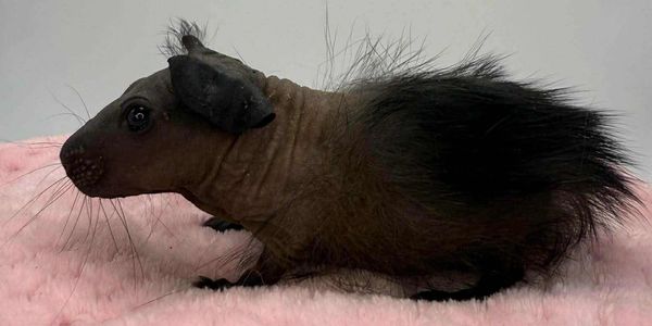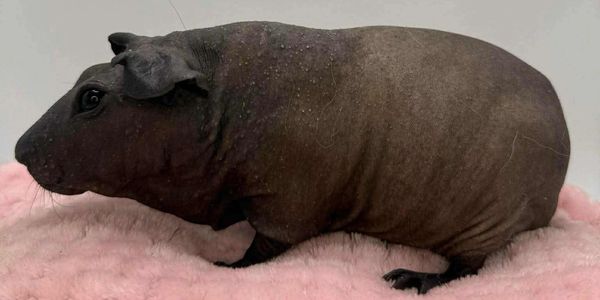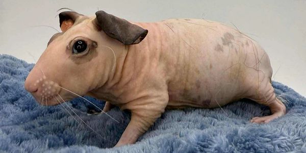 The Baldwin guinea pig is a hairless breed of guinea pig that is born with fur but loses it within days or weeks from birth, developing a rubbery, wrinkled skin